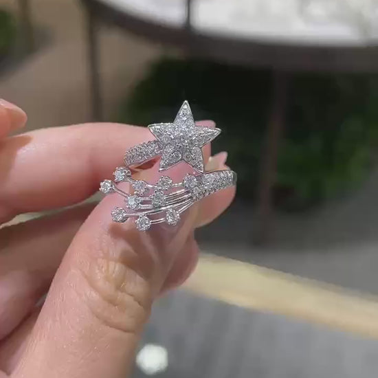 Excellent S925 Silver Comet Full-Moissanite Diamond Ring