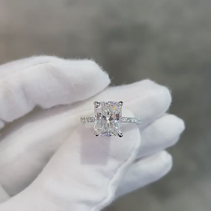 Excellent S925 Silver Radiant Cut 4 Carat Moissanite Ring