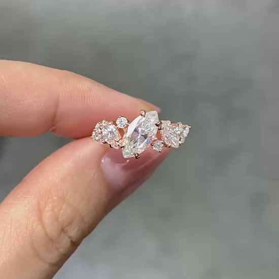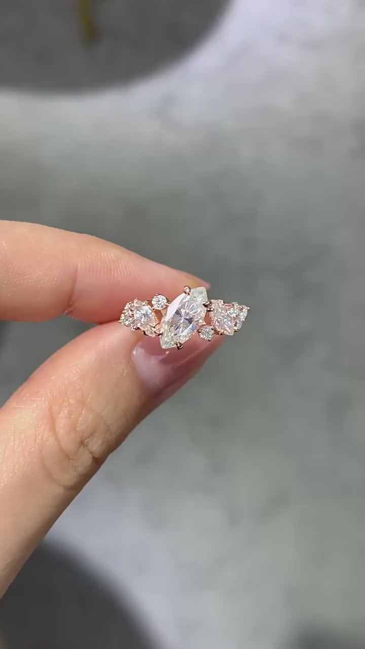 Excellent S925 Sterling Silver, 18k Rose Gold-Plated Asymmetrical Moissanite Ring