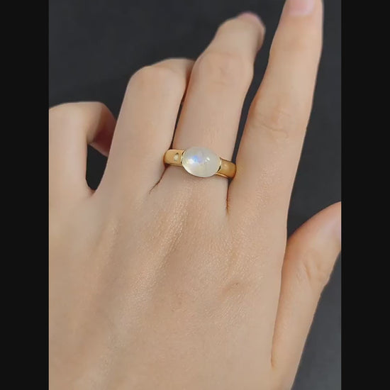 ✨ This ring is like wearing a glowing moon on your finger! ✨ That 8*10mm natural moonstone. It shimmers with the dreamiest iridescent glow — just like moonlight dancing on water. The band is crafted from S925 silver plated in 18K gold, so it has that luxe, polished shine that feels seriously premium. Love how the bold yet minimalist design lets the moonstone steal the show — perfect for stacking or rocking alone as a statement piece. Whether you’re obsessed with celestial vibes or just want a timeless ring that turns heads, this one’s a winner. Swipe to see how light hits that moonstone — it’s mesmerizing! 🌙💫