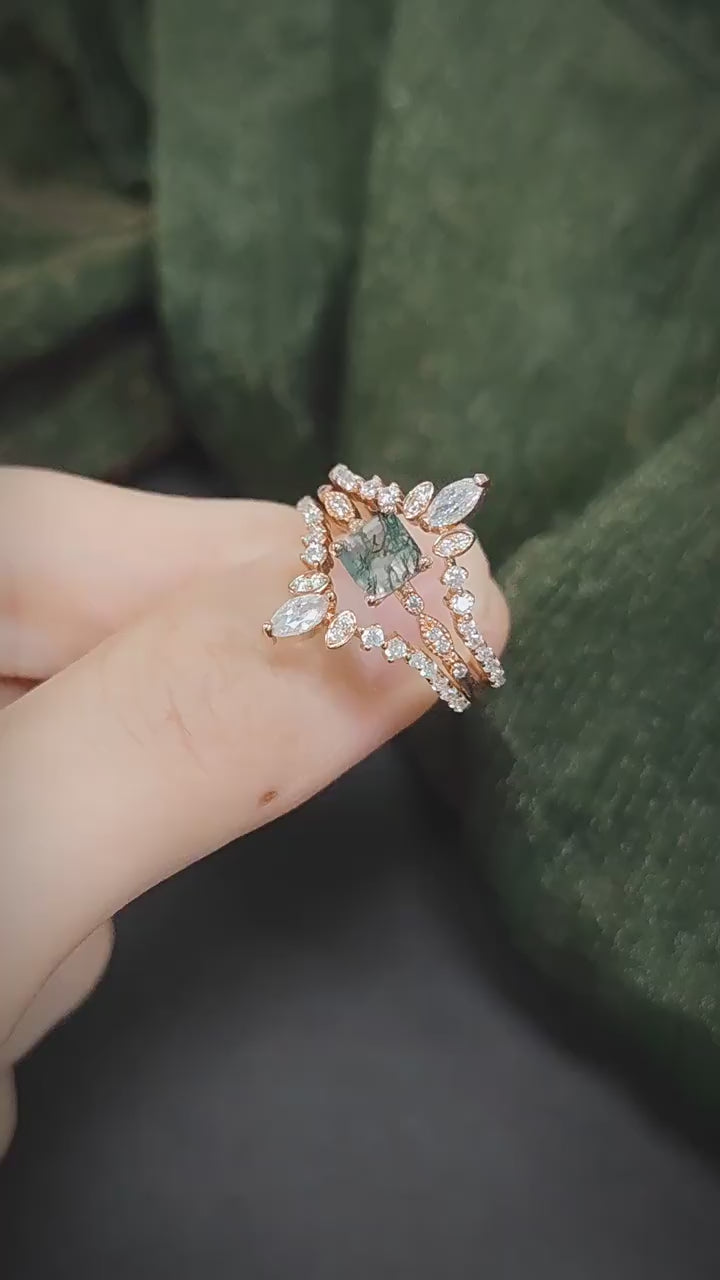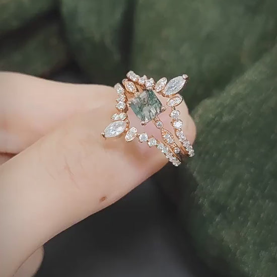 At the center of each ring lies natural moss agate—a gemstone that captures swirling "moss" (actually mineral inclusions) within its crystalline form. It’s like wearing a miniature forest on your finger, with every green vein whispering tales of the earth’s quiet magic. Each stone is entirely unique, just like you.
