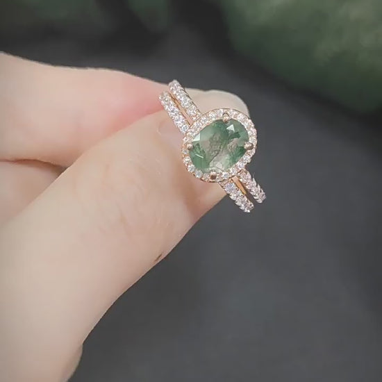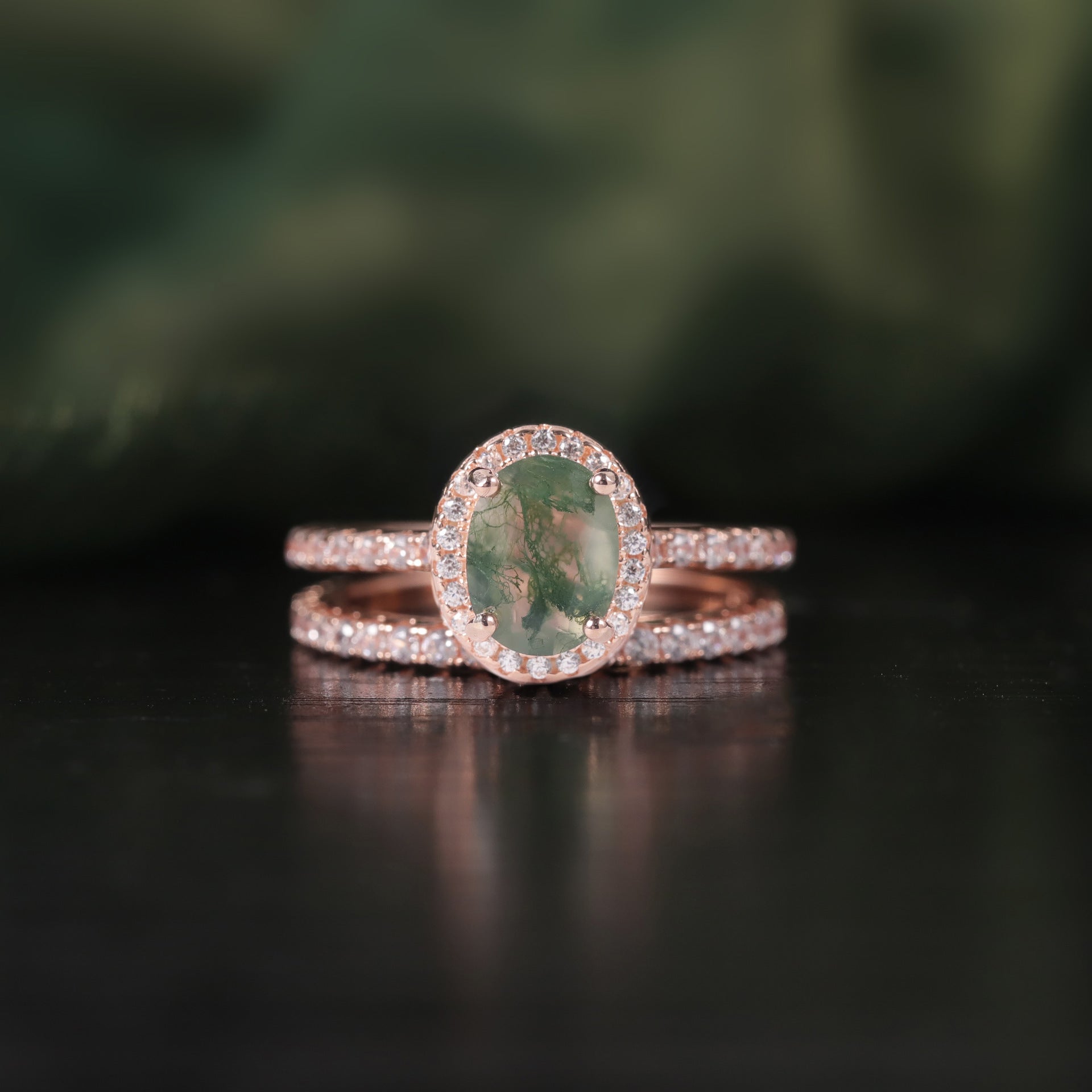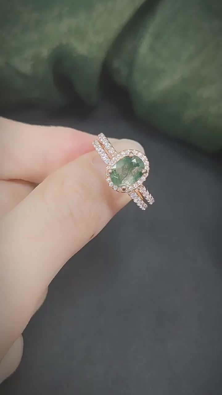 At the center of each ring lies natural moss agate—a gemstone that captures swirling "moss" (actually mineral inclusions) within its crystalline form. It’s like wearing a miniature forest on your finger, with every green vein whispering tales of the earth’s quiet magic. Each stone is entirely unique, just like you.