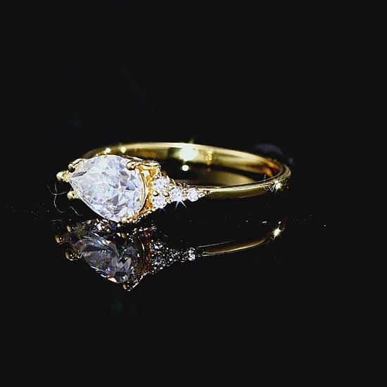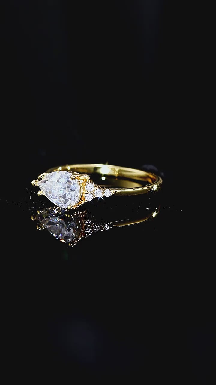 S925 Silver 18K Gold‑Plated Teardrop‑Shaped Moissanite Ring