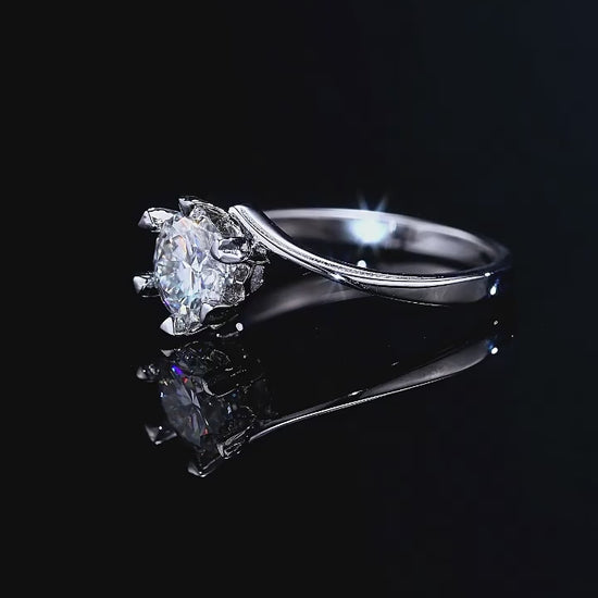 S925 Silver Classic Six‑Prong Moissanite Ring