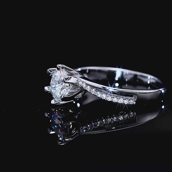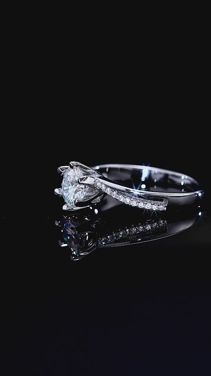 S925 Silver Classic Six‑Prong Moissanite Ring