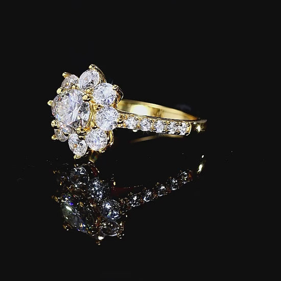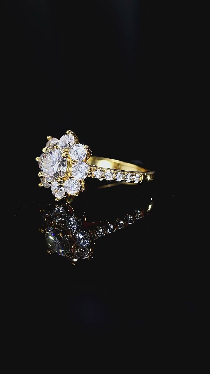 S925 sterling silver 18K gold-plated sunflower moissanite ring