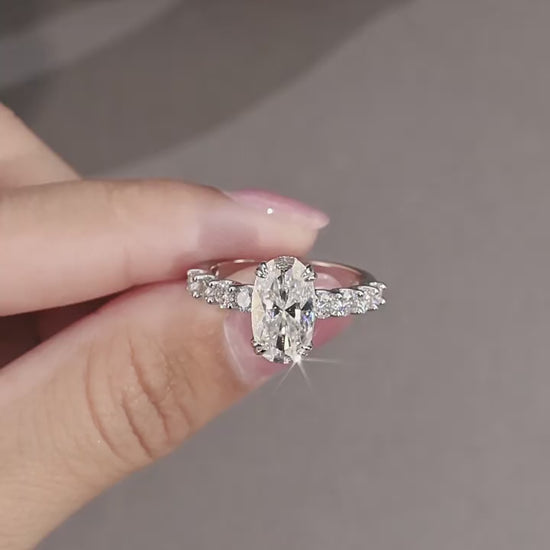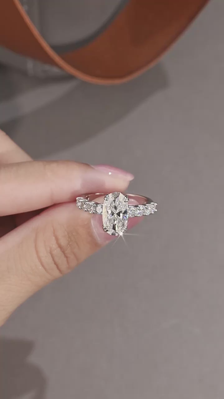 Excellent S925 Sterling Silver Oval Moissanite Ring